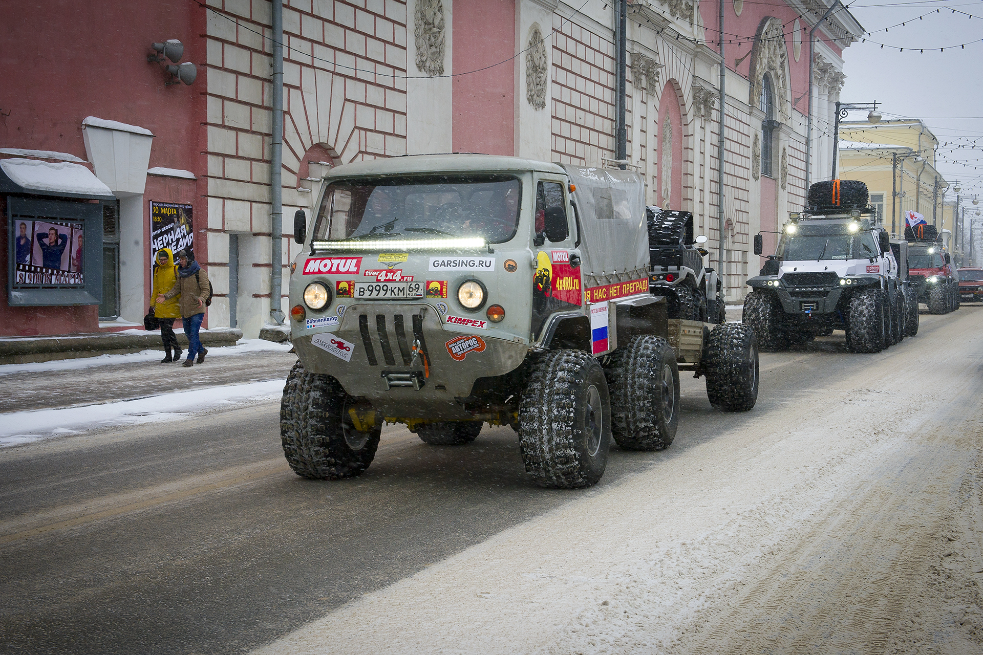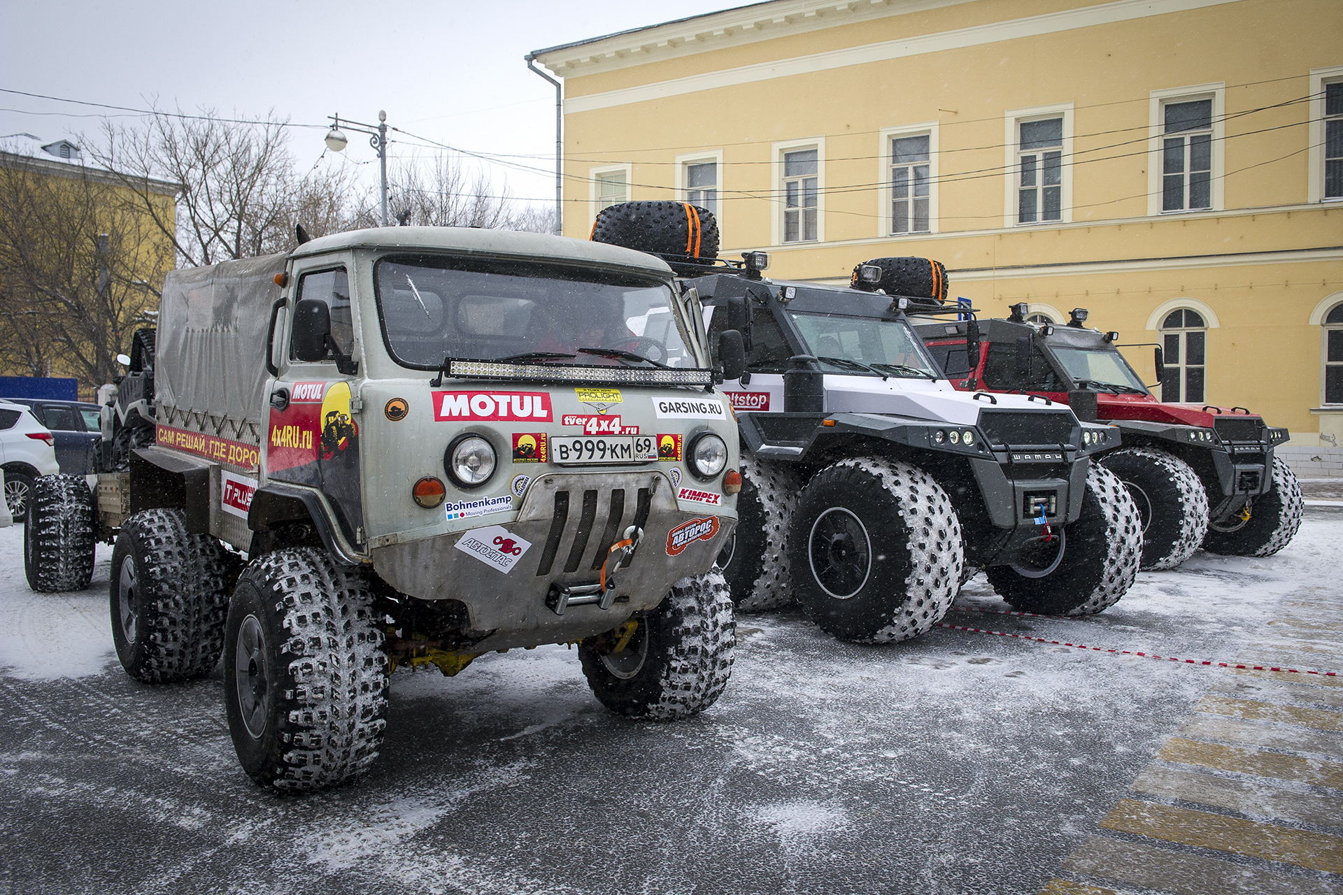 The official ceremony of starting the expedition “North with no Barriers” took place in Tver. The expedition was organized by “AVTOROS” company and the jeep club “Lebedushka”.. The head of the expedition - Yevgeny Pavlov. Surprisingly a lot of people came to see the vehicles and wish the members of the expedition good luck. Men wanted to know the details of the vehicle design, children and women with curiosity examined the salons of expeditionary all-terrain vehicles.