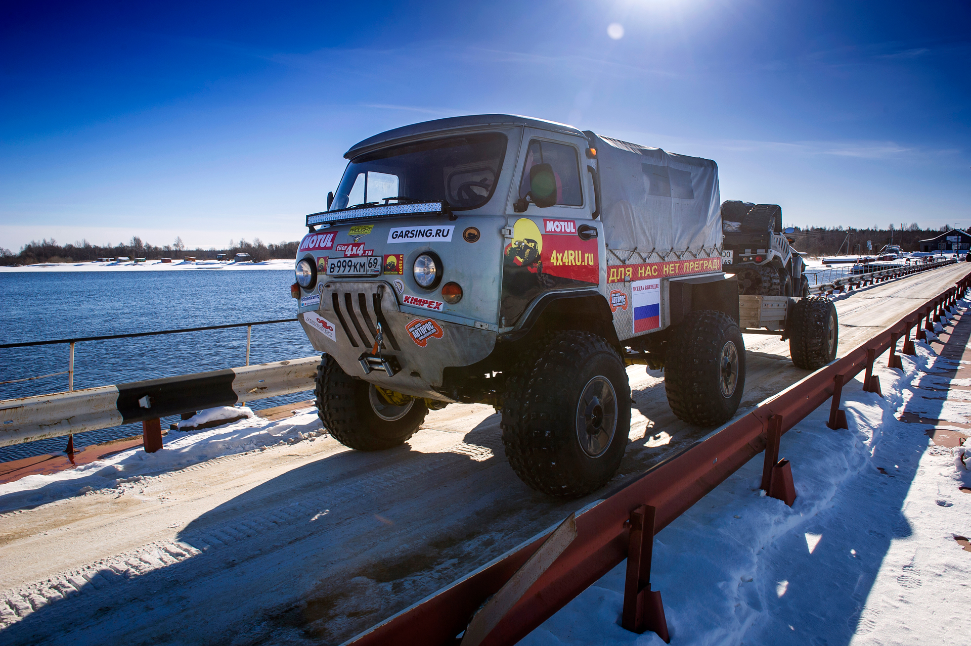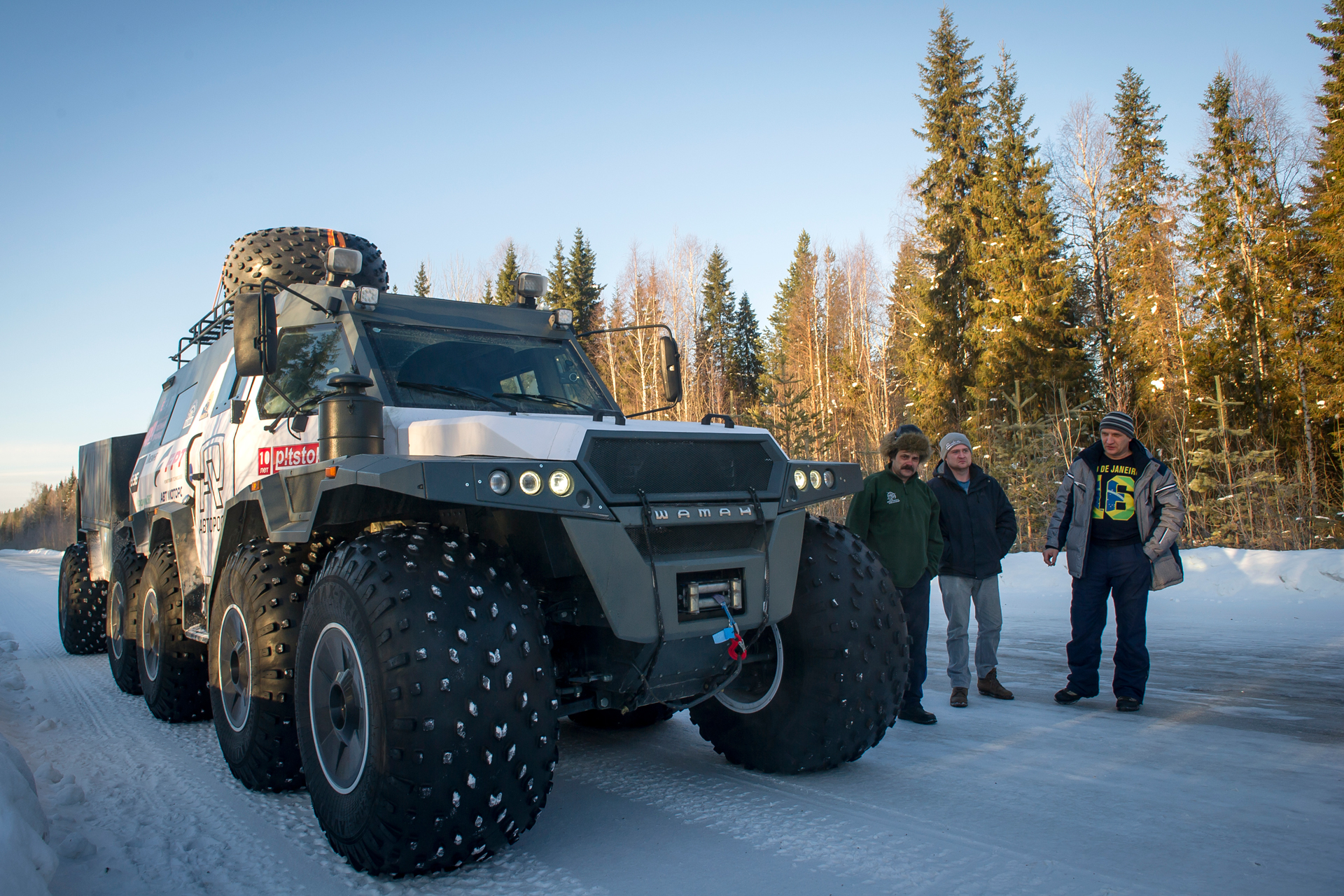 The expedition team came back home. We returned back through Arkhangelsk. Estimated arrival date was March 28th. The red SHAMAN returned to Tver on its own wheels. Evgeny Pavlov sent his 6x6 quad bike back with a transport company in Ukhta.