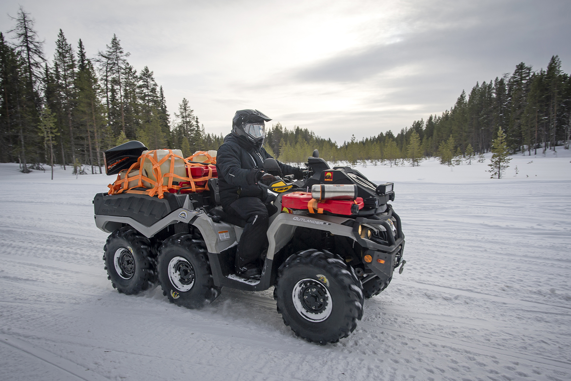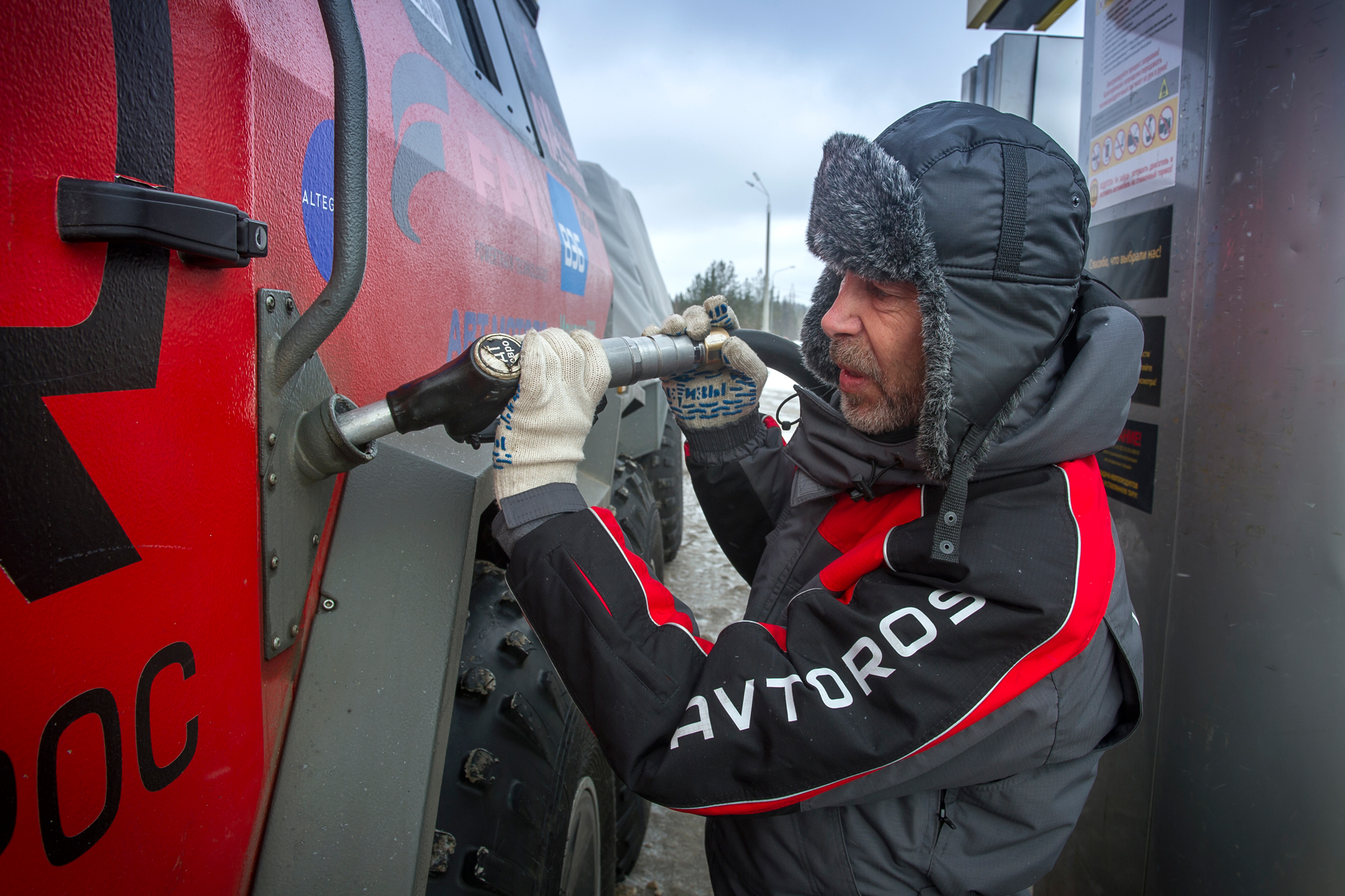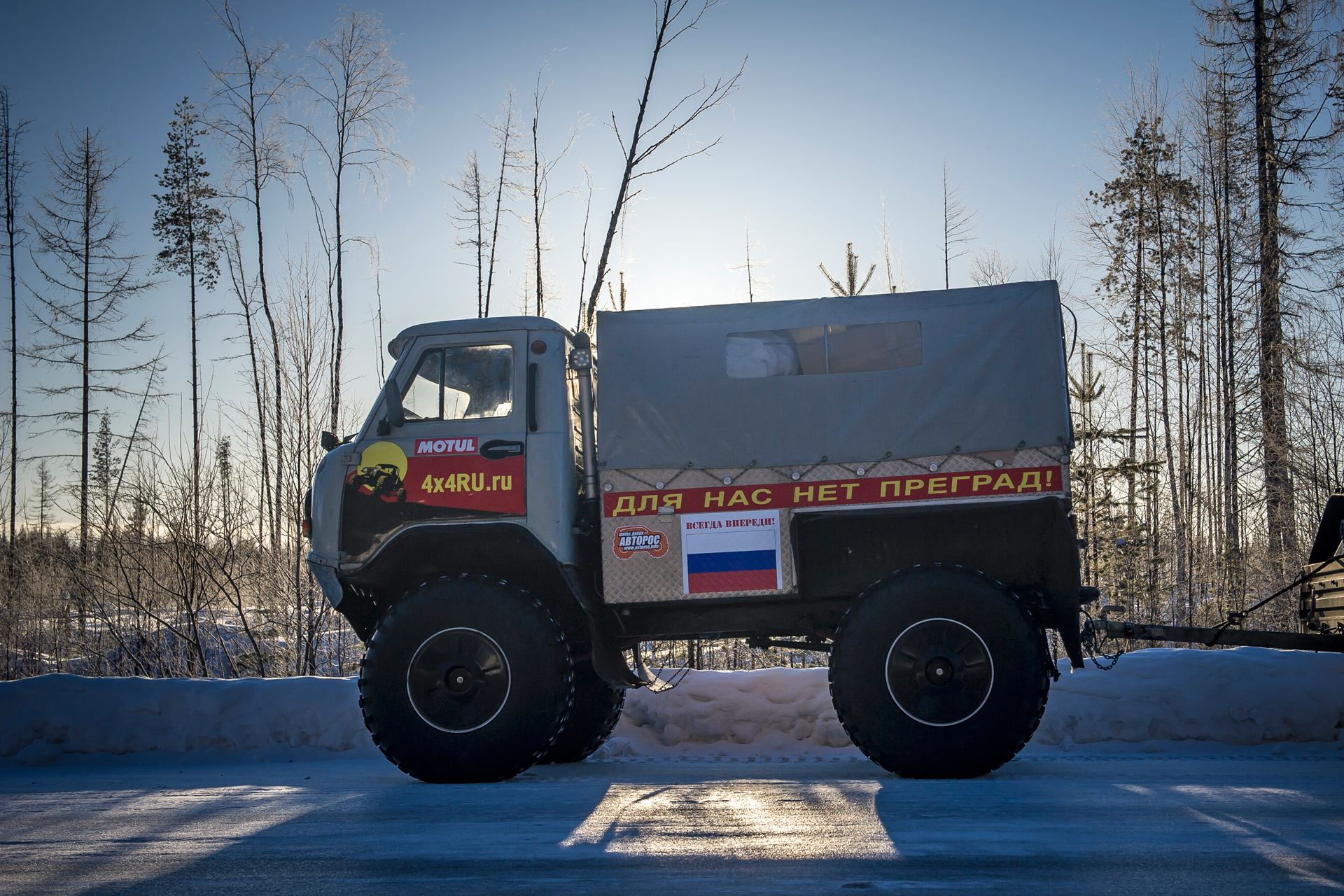 Our expedition had a short delay near Arkhangelsk. We purchased some more groceries, fresh vegetables and gifts. The red SHAMAN returned from Arkhangelsk, where he went to the gas station for refueling, and also filled two 200-liter barrels of gasoline - for Yevgeny Pavlov’s quad bike . Finally, the “Red One” came back and they hurriedly set off.