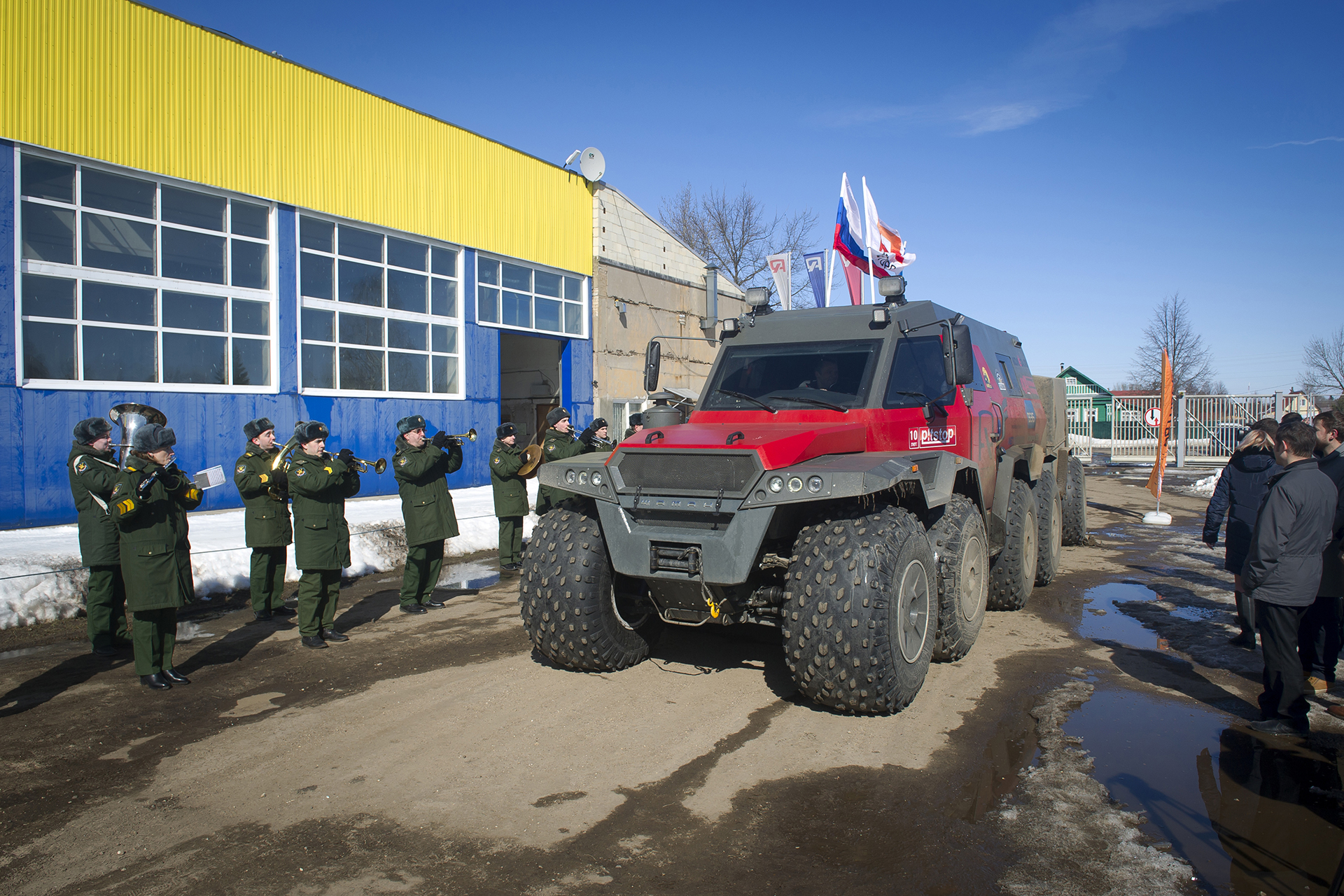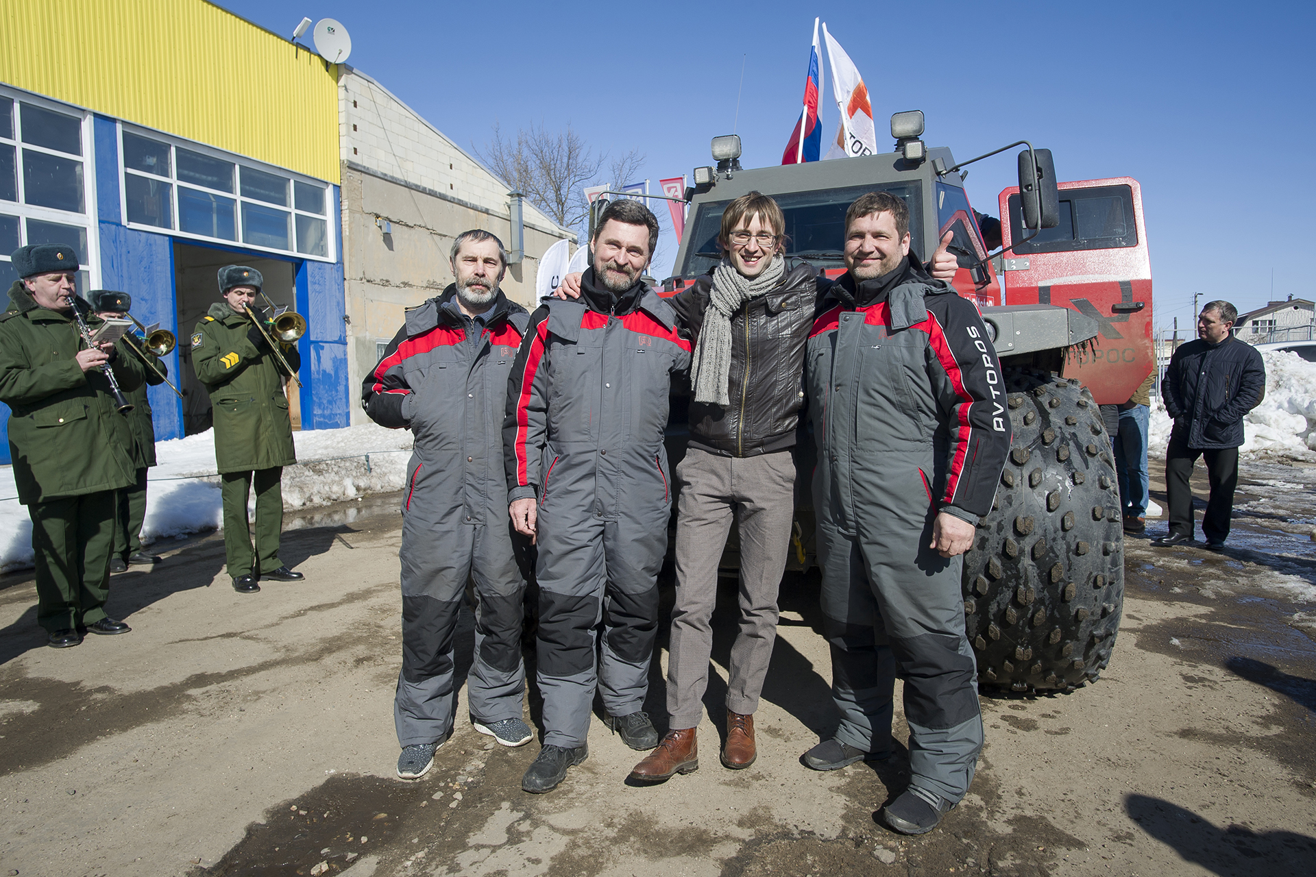 The expedition "NORTH WITH NO BARRIERS" ended. On Friday noon, accompanied by the music of Russian military marches, the all-terrain vehicle Shaman entered the territory of the Avtoros company, where the entire company staff greeted it with great joy. Avtoros is really grateful to everyone who helped, participated and organized this interesting trip to the North. The expedition took place from March 4 to 30, during this time the SHAMAN traveled 7600 km - 3500 km off-road and the rest on public roads. The route passed through Arkhangelsk, Mezen, Canin Nos, Naryan-Mar, Ust-Tsilma, Ukhta, Mezen and back to the AVTOROS factory.