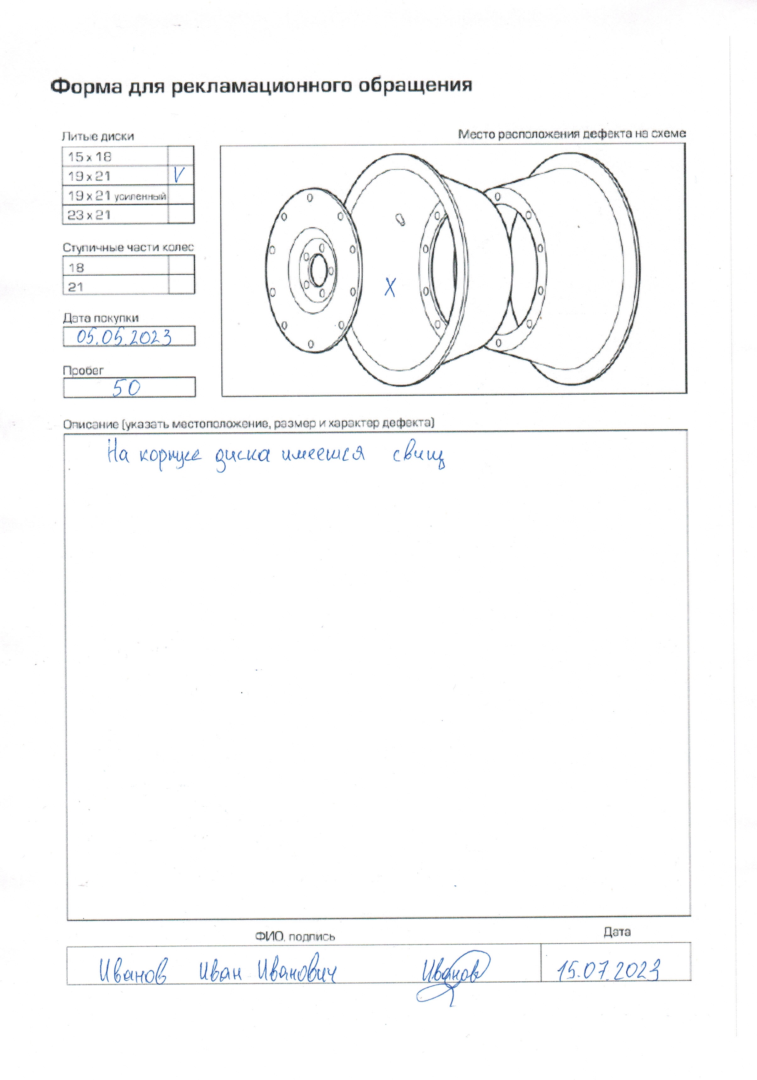 Примечание: На каждую шину и диск с дефектом, которую хотите поменять, рекламационный акт заполняется отдельно, фото-видеофиксация подтверждения дефекта каждого диска и шины осуществляется по тому же принципу!